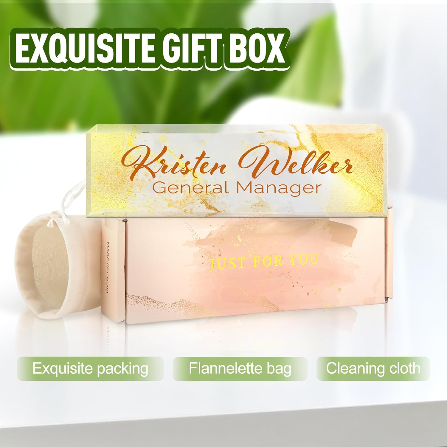 Gowellly Desk Name Plate Personalized - Custom Acrylic Name Plate for Desk - Enterprise Custom Logo/Text nameplates - Employee Appreciation Gifts (Golden Marble)
