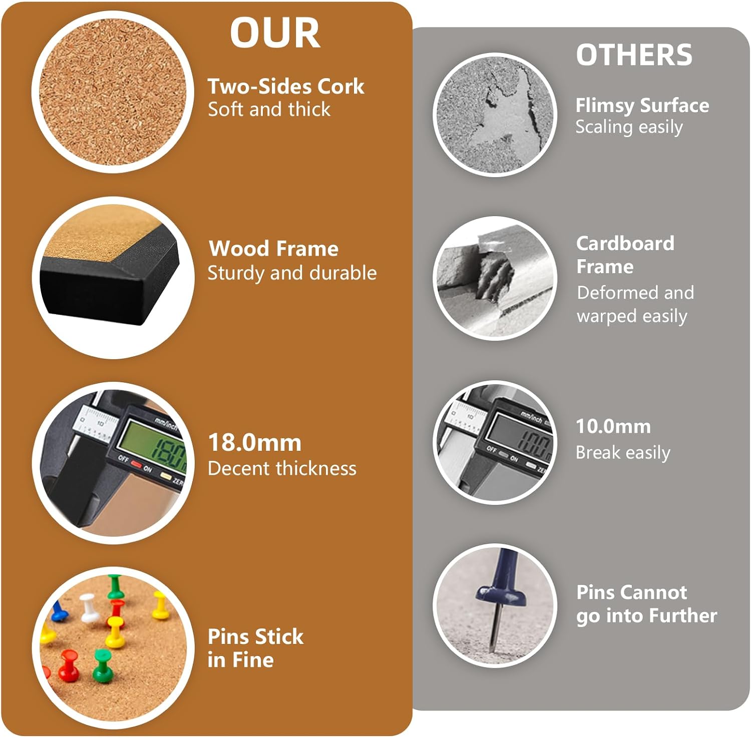 24” x 36” Cork Boards for Walls with Black Wooden Frame 1pack, Double Sided Office Board for Wall Organizer, Bulletins Board Decorative Hanging Pin Board for School, Home & Office, Notice Board
