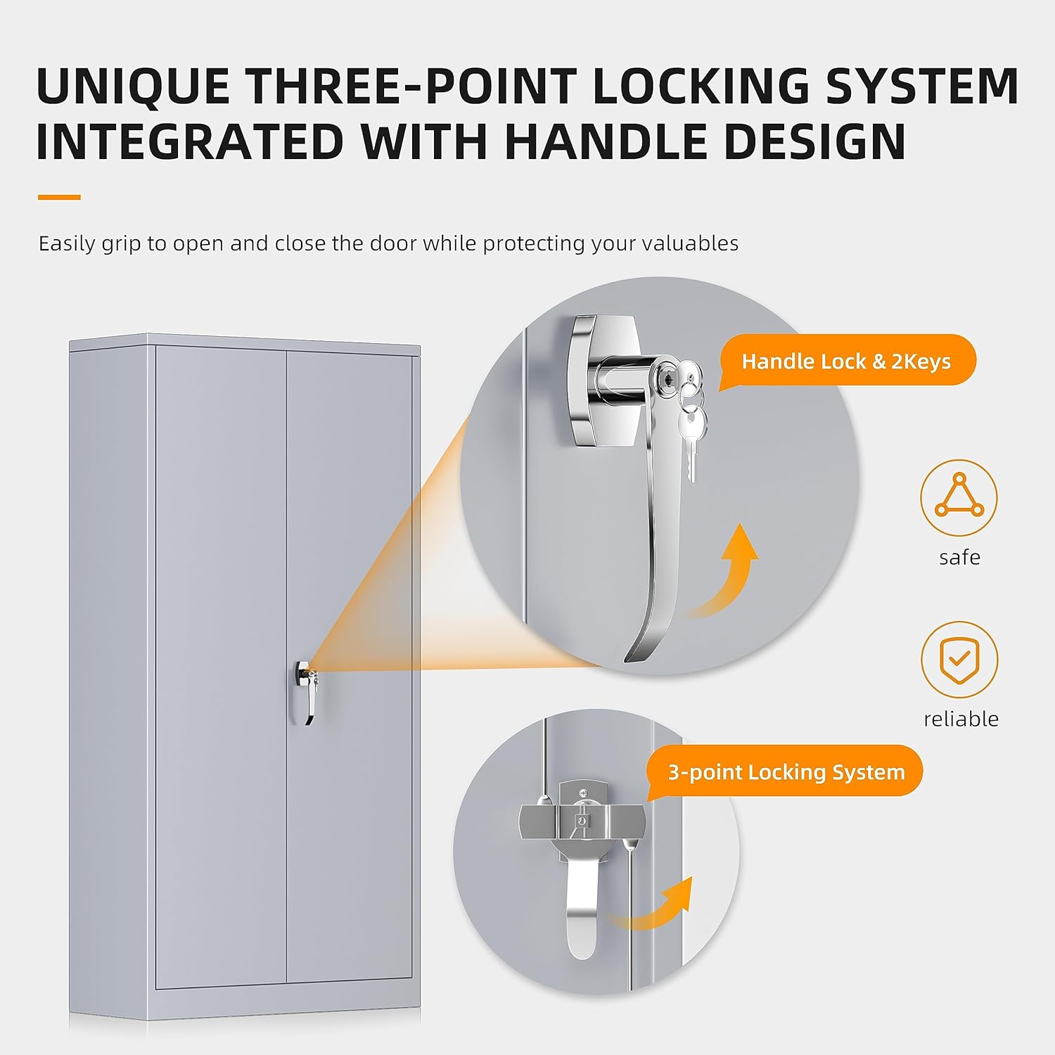 - 『4 Adjustable Shelves』: Tall storage cabinets with 4 adjustable shelves and 2 door to accommodate items of all sizes. Garage cabinets and storage system with lock picking to secure valuables, with two keys.