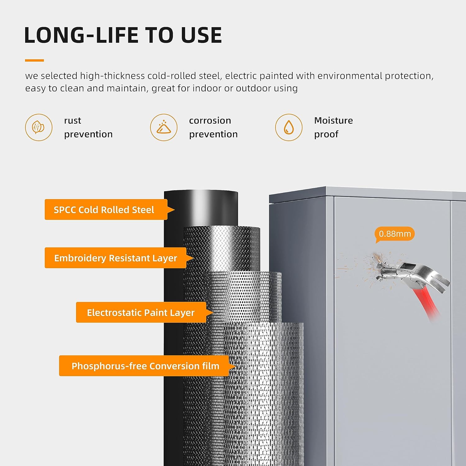 - 『Multi-scene』: Cement grey metal storage cabinet with locking doors is perfect for storing large quantities of items, this large steel storage cabinet adds extra space to any room and can be used in home office, garage, basement, etc.