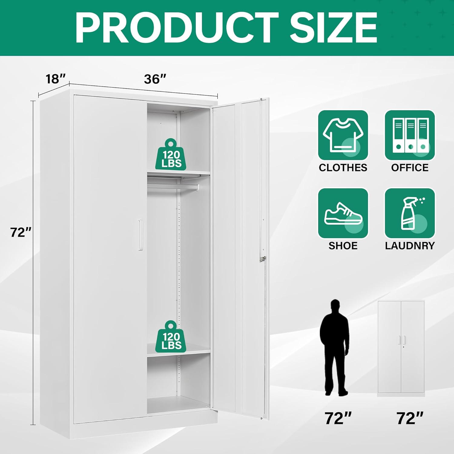 Letaya Metal Wardrobe Cabinets with Lock,Clothing Locker 72" X 36" X 18" Storage Cabinets for Home Room,Fire Department, School, Employee,Gym,Government (White)