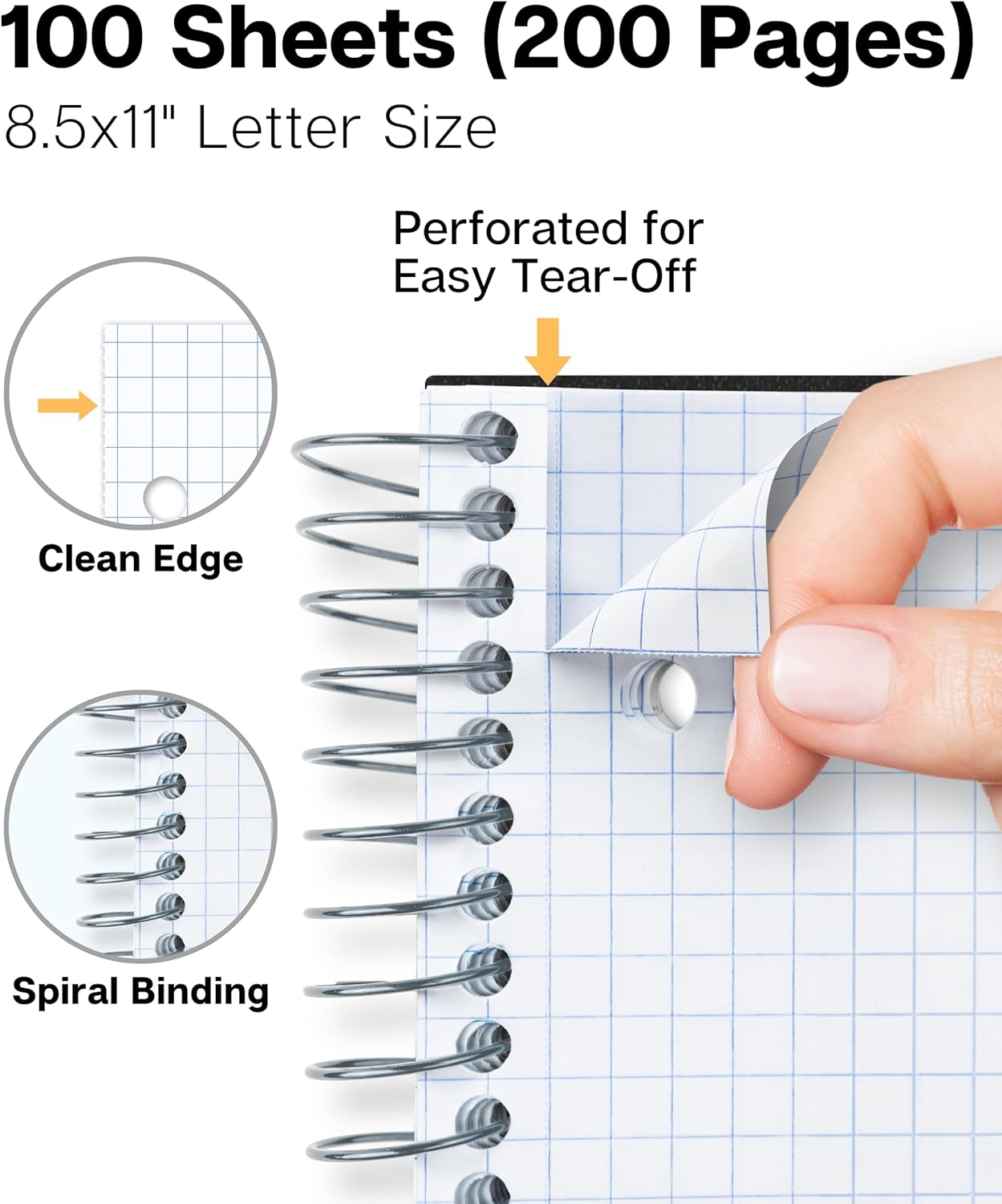 - 100 Double-sided 8.5 x 11 Sheets. Graph paper with ΒΌβ squares, 4 per inch. Perforated for clean edge tear-out. Detached page measures 8-1/2 x 11", 3-Hole punched to fit standard binders.