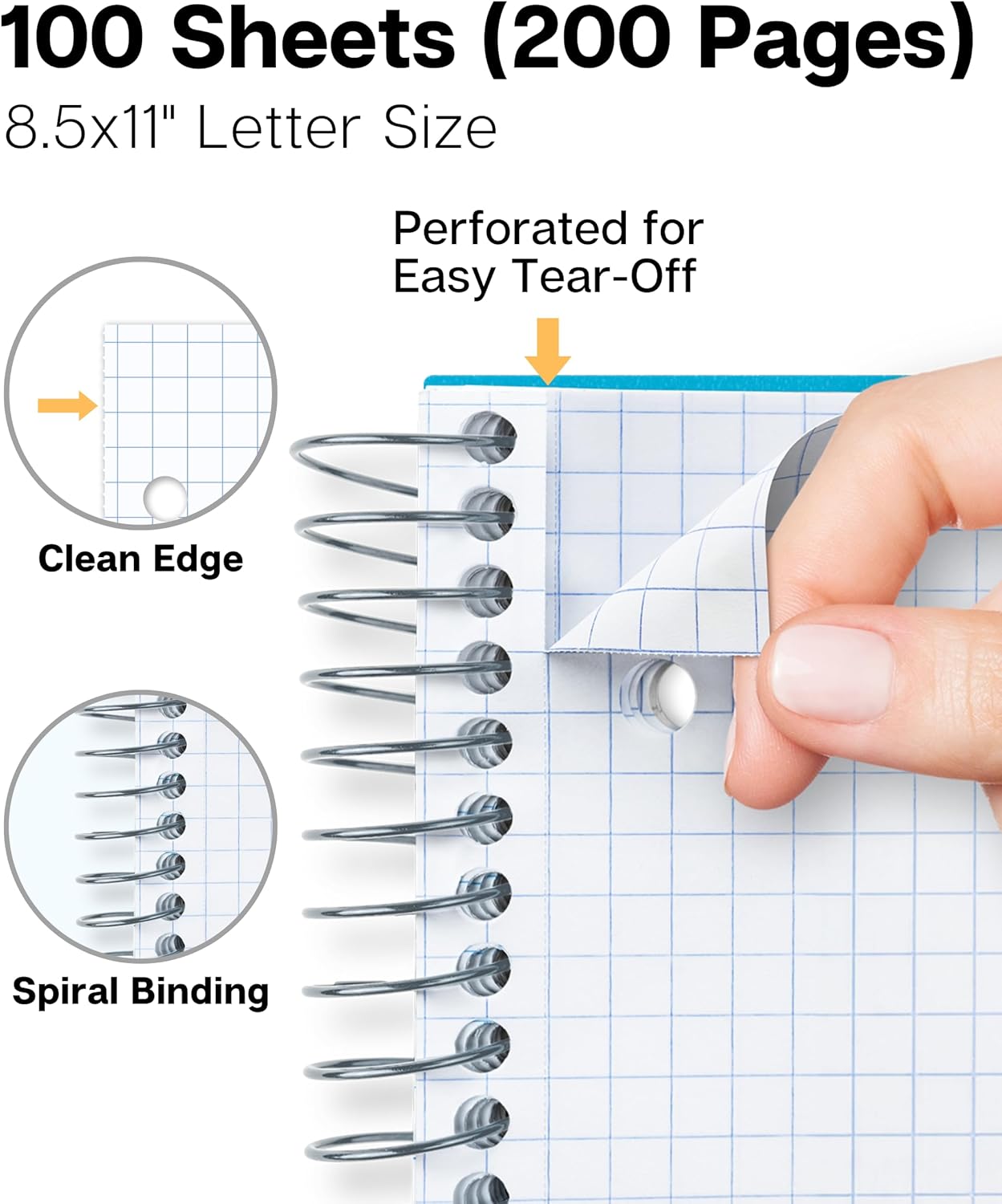 - Graph Ruled Spiral Notebook: Blue plastic cover resists moisture, Protects your valuable class notes, assignments, and homework.
