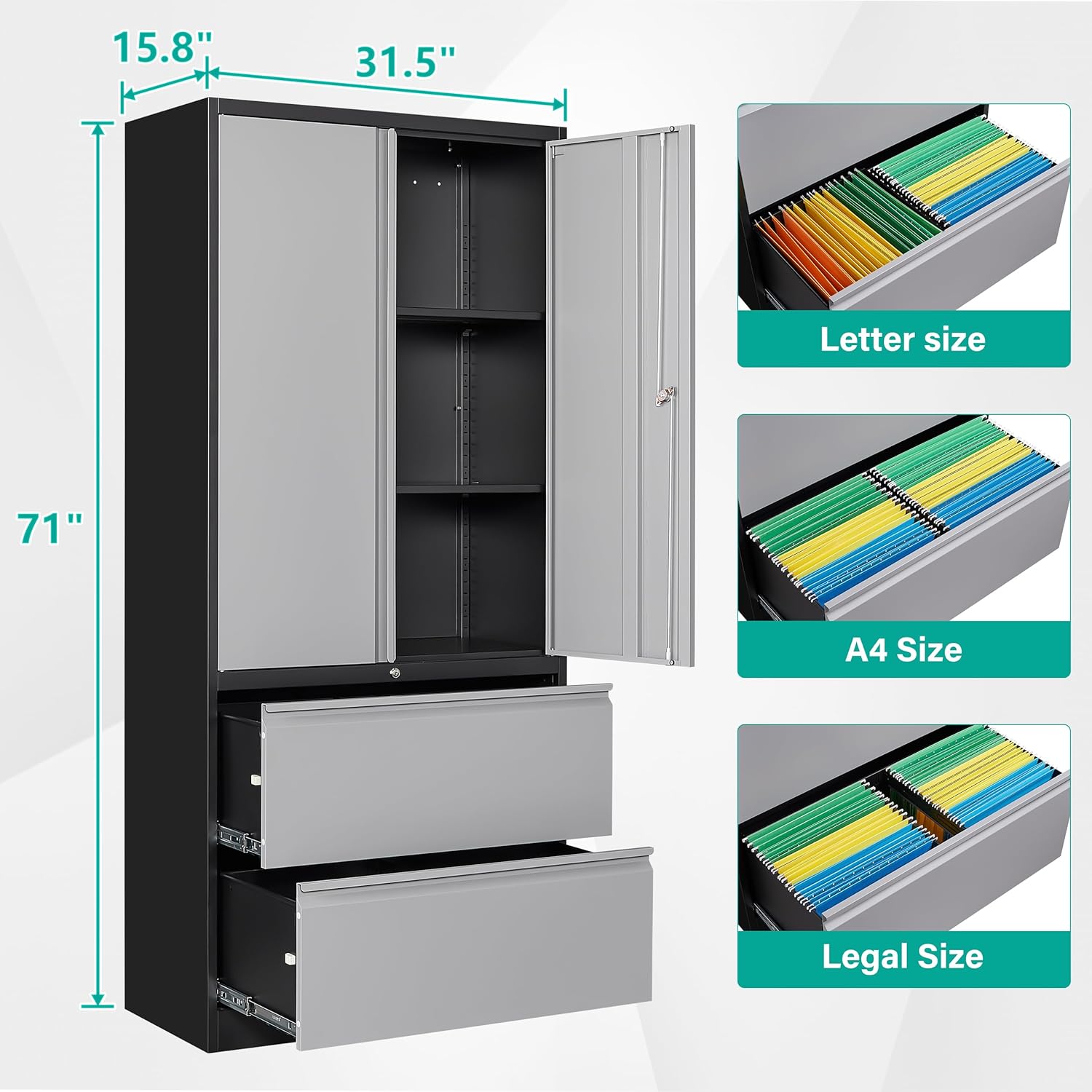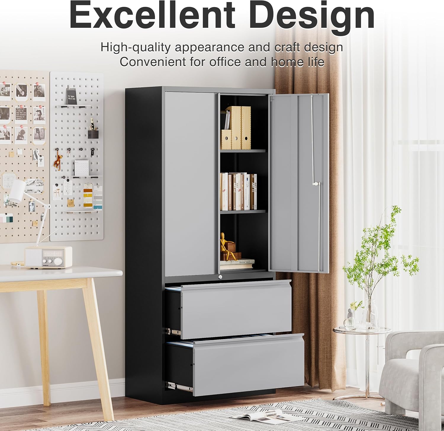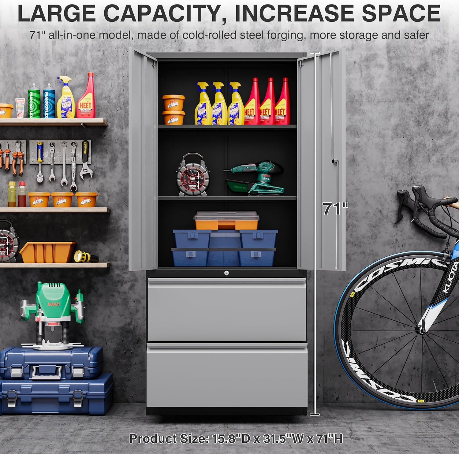 SISESOL Metal Storage Cabinet with Drawers, 71" File Cabinets for Home Office, Locking Steel Storage Cabinet with Doors and Shelves for Home, Office, Warehouse, Garage, School (Gray, 2 Drawers)