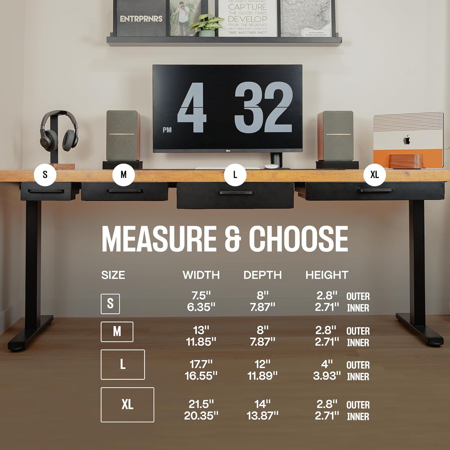 - VERSATILITY IN SIZES - Customize your storage with 4 available sizes, designed to fit various desk dimensions and storage needs. Choose the size that complements your space and amplifies your productivity.