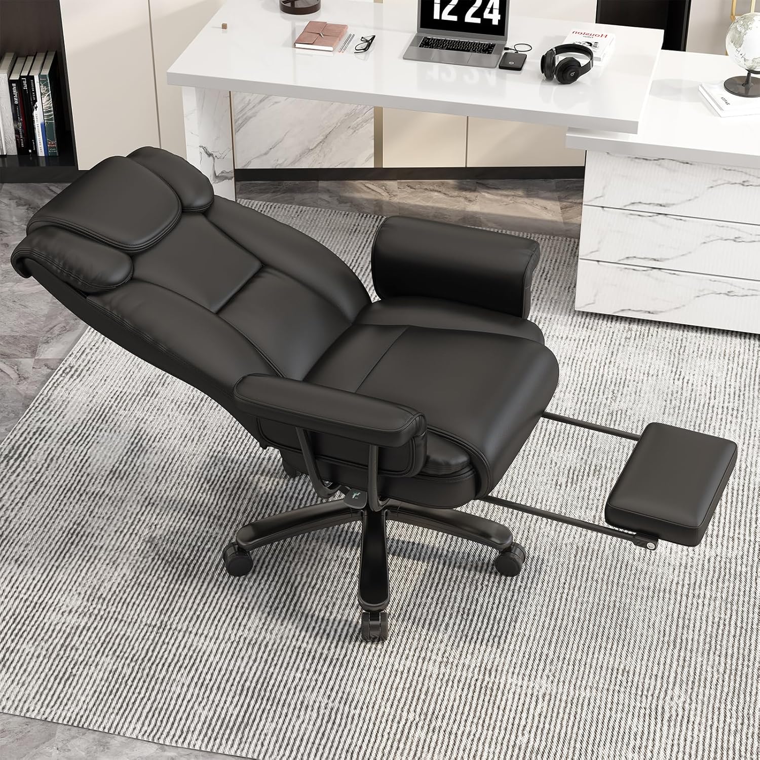 - 160 Degree Reclining Office Chair with Footrest: Our reclining office chair is designed for maximum comfort during those long workdays. Whether you're catching a quick break or need a power nap, this chair's adjustable recline feature has got you covered