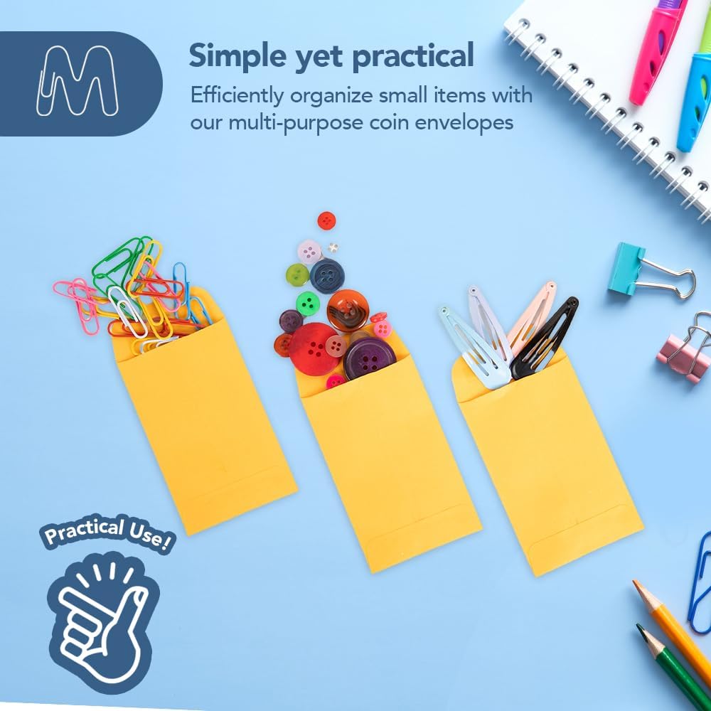 - [PREMIUM PAPER QUALITY]: Our #1 coin envelopes are crafted to precise 2.25 inch x 3.5 inch, from durable 100-gram recyclable Gold Kraft paper for long-lasting quality. They are the perfect small envelopes for coins, seeds, gift cards and so much more!
