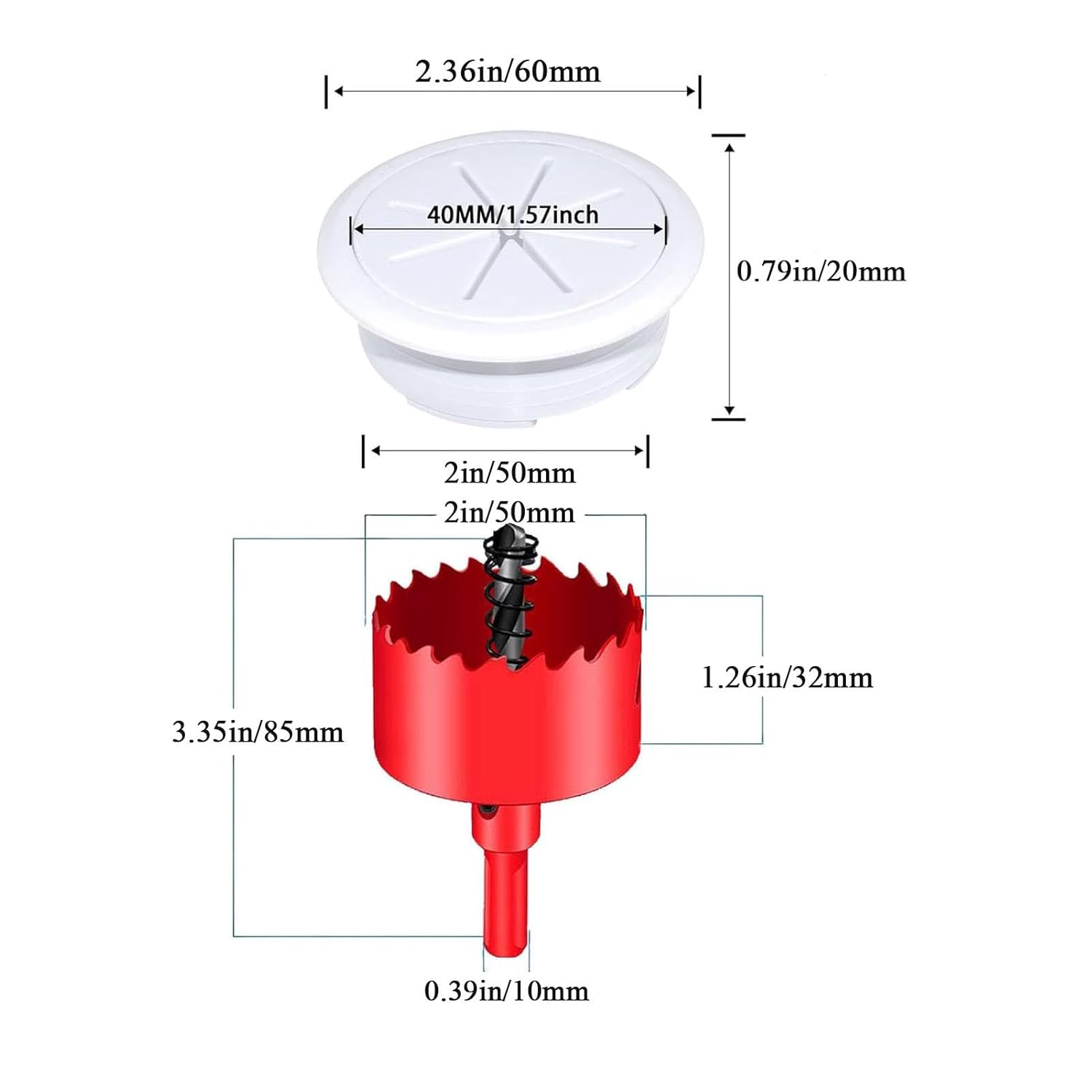 - 【Easy to Use】the desk grommet adopt detachable cover design which ensure convenient to use or disassemble. When drill a wood boards or such thing with a thickness of more than 10 mm, please remove the spring!