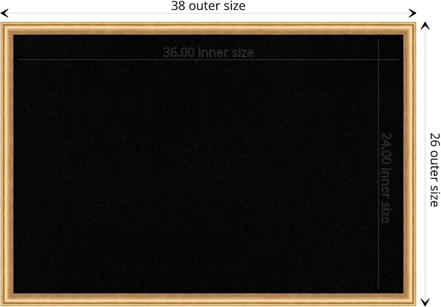 - DIMENSIONS: The overall size of this framed corkboard measures 38 in. x 26 in., including the frame. Its functional cork board area measures 36 in. x 24 in.