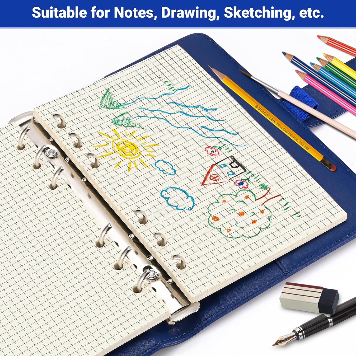 A6 Grid-Ruled Refill Paper, 100gsm Thick Beige No-Bleed Sheets (80-Pack), Pre-Punched – Fits A6 6-Ring Binders for Office, School & Teachers