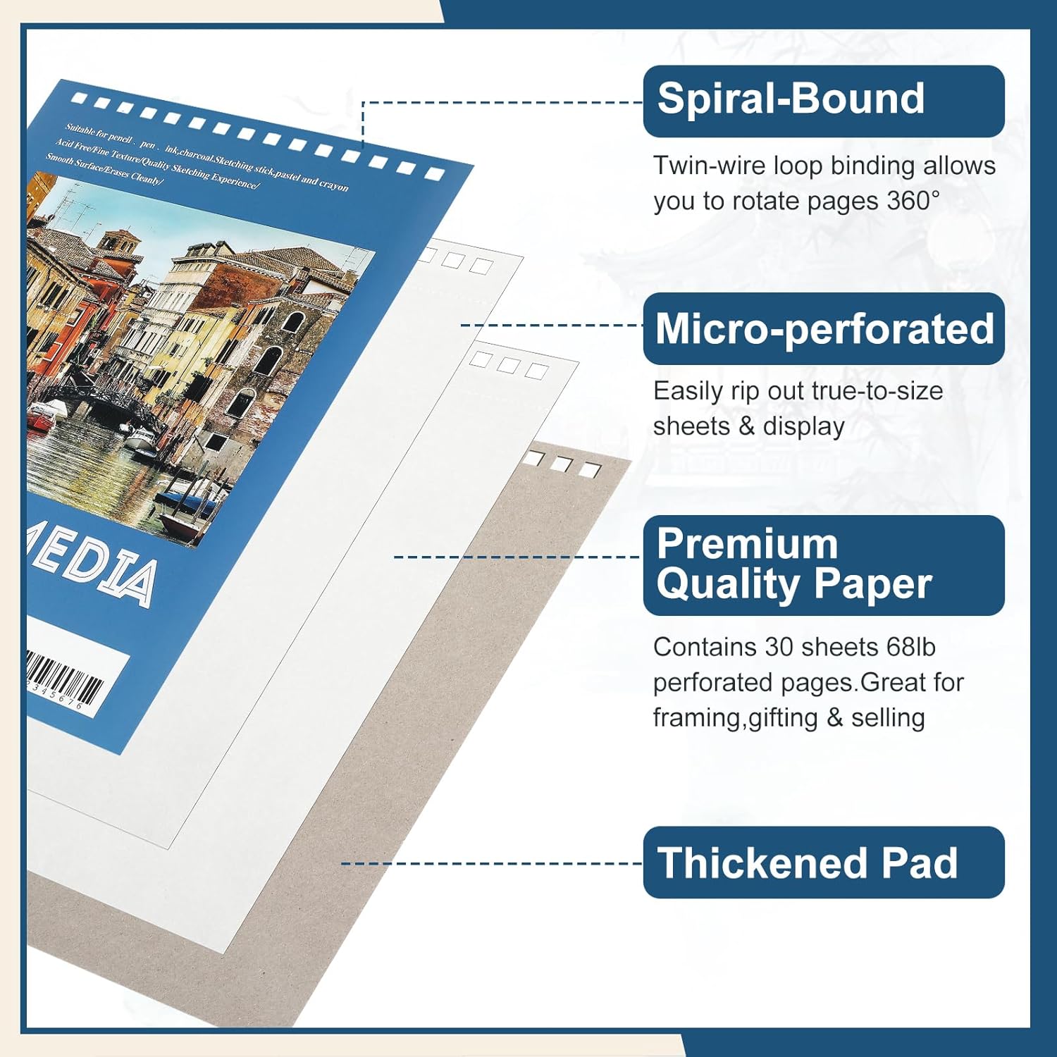 - Quality Paper Material: our drawing pad adopts 60lb/ 100 GSM paper as inner sheets, which is tough and reliable to be erased without hurting the surface of the paper, and it can withstand mixed medias without deformation or penetration, bringing a pleasant experience