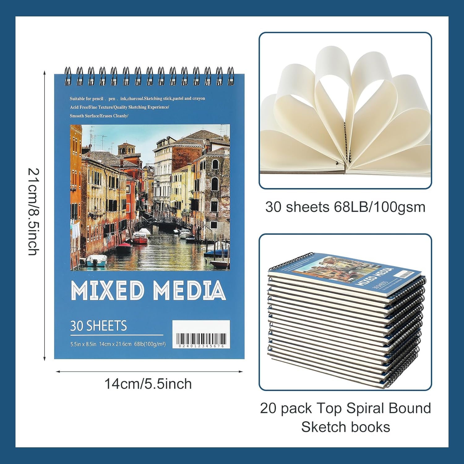 Jexine 5.5'' x 8.5'' Top Spiral Bound Sketch Pad 30 Sheet Each(68lb/100gsm), Sketching Drawing Pad Artist Sketch Pad Kids Drawing Paper Art Sketchbook for Charcoal Graphite Painting (40)
