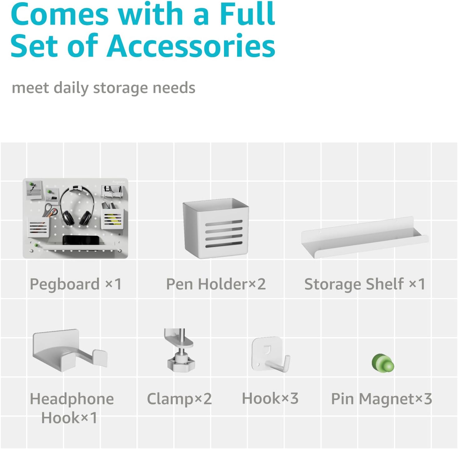 - ENDLESS STORAGE POSSIBILITIES: With its rich and multi-functional accessories, this desk organizer offers limitless storage options to keep your workspace tidy. Perfect for storing office supplies, displaying craft supplies, or organizing your favorite gaming accessories, this pegboard is a game changer for clutter-free living.
