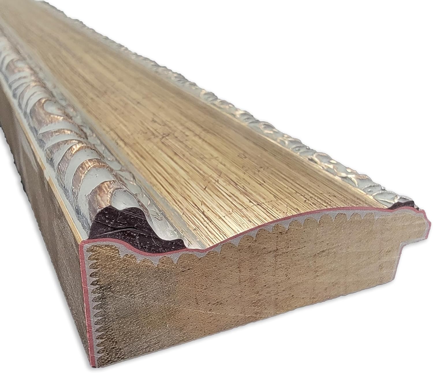 - 100% REAL WOOD FRAME DETAILS: The Fleur Champagne Silver Frame is a satin finish champagne silver frame featuring bronze accent lines running its length and raised decorative scroll work on the inner and outer edges. The frame is 2.75 in. wide and stands 1.25 in. off the wall.