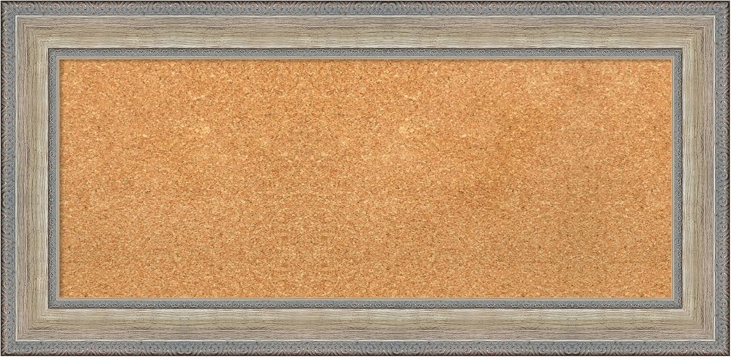 Amanti Art Natural Cork Board for Wall, 17x35 Vision Board with Silver Wood Frame, Medium Corkboard Office Decor for Home Organization, Traditional Corkboard Pinboard to Display Items for Home