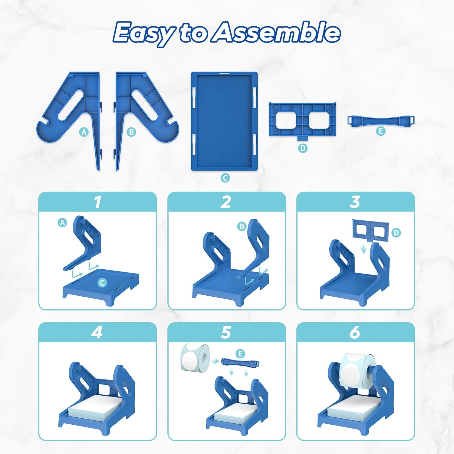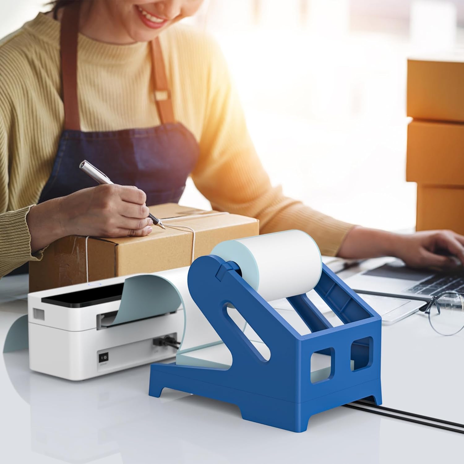 PONNOR Label Holder Thermal Shipping Label Holder for Rolls and Fanfold Labels Stand Desktop Printer DIY Accessory Business Supplies for Home, Office(Blue)
