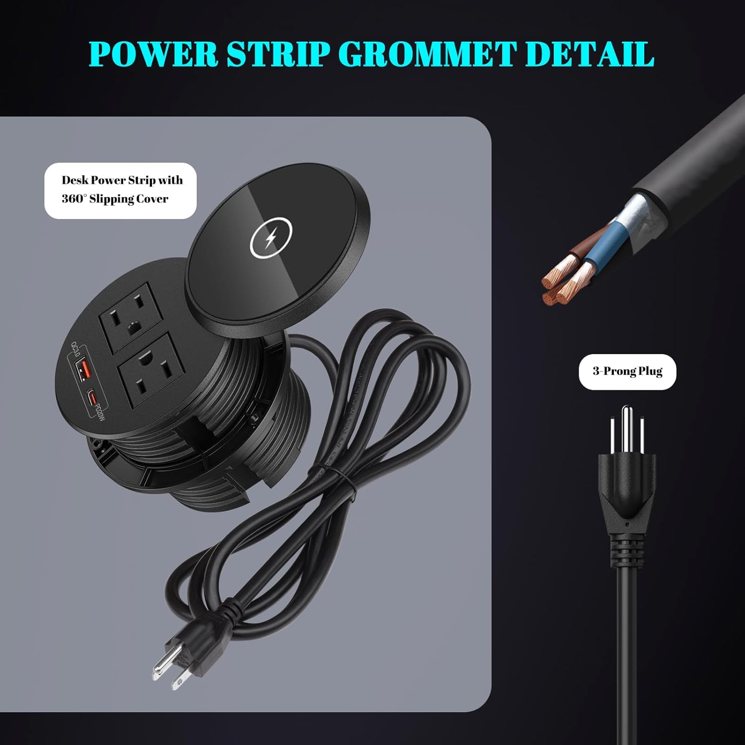 - 【Power strip with 6FT Extension】This Round power Grommet is very thin and has better current carrying capacity which can easily hide in a sofa, bed, nightstand, or other furniture. The cover on the power desk grommet back allows this power strip to be securely installed in various applications