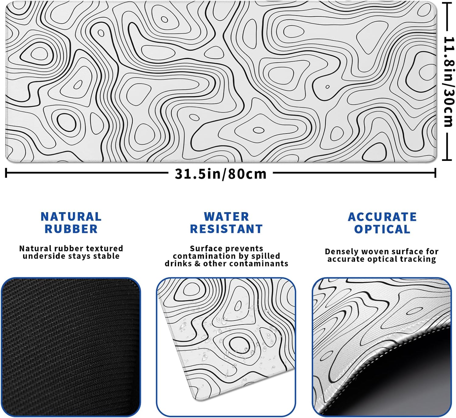 - β₯[Large and Perfect Size]:The extended Topographic Contour desk pad measures 31.5x11.8x0.12 inches that covers most of the desk.The desk pad is large enough to have a mouse, gaming keyboard, and other desk items while maintaining protecting your desk all the time.You can freely move your mouse without any interruption and don't have to continually adjust the mat as you do with traditional mousepads.