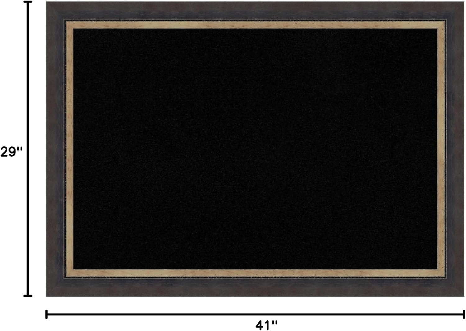 - DIMENSIONS: The overall size of this framed corkboard measures 41 in. x 29 in., including the frame. Its functional cork board area measures 36 in. x 24 in.