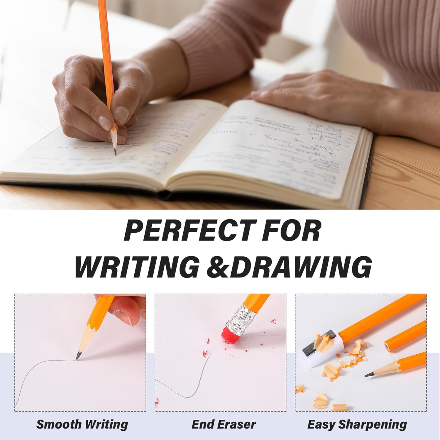 - Complete Your Writing Quest: dive into a writing journey with 60 pieces of quality wood cased pencils; Each plentifully packed kit comes with yellow barrel pencils capped with red erasers, wrapped in silver metal, ensuring your daily study and drawing needs; It also serves as an ideal supply that you can delightfully share with classmates and friends
