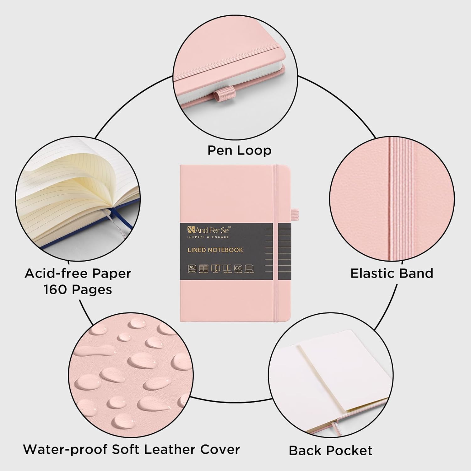 &And Per Se Lined Journal Notebook, 160 Pages, A5 5.7 x 8 inches College Ruled Thick Paper Notebook Journals for Writing, Hardcover Notebooks for Women Men Office School (1 Pack, Pink)