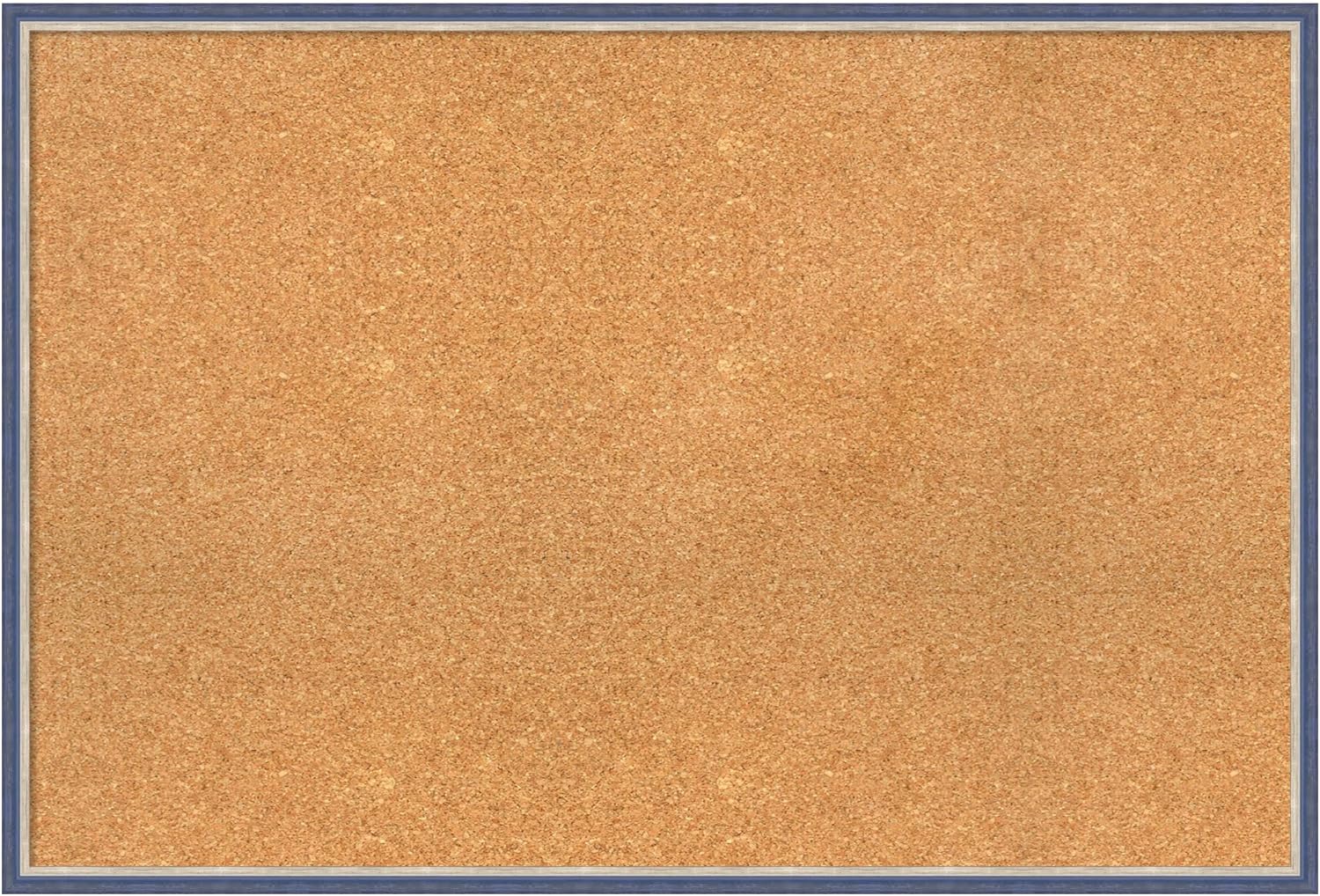Amanti Art Natural Cork Board for Wall, 25x37 Vision Board with Blue Wood Frame, Large Corkboard Office Decor for Home Organization, Modern Contemporary Corkboard Pinboard to display items for home