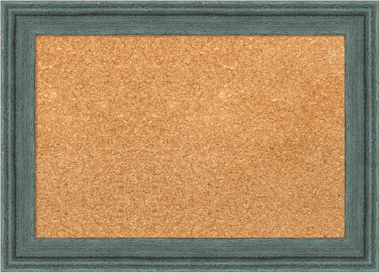 Amanti Art Natural Cork Board for Wall, 15x21 Vision Board with Blue Wood Frame, Small Corkboard Office Decor for Home Organization, Country Rustic Corkboard Pinboard to Display Items for Home