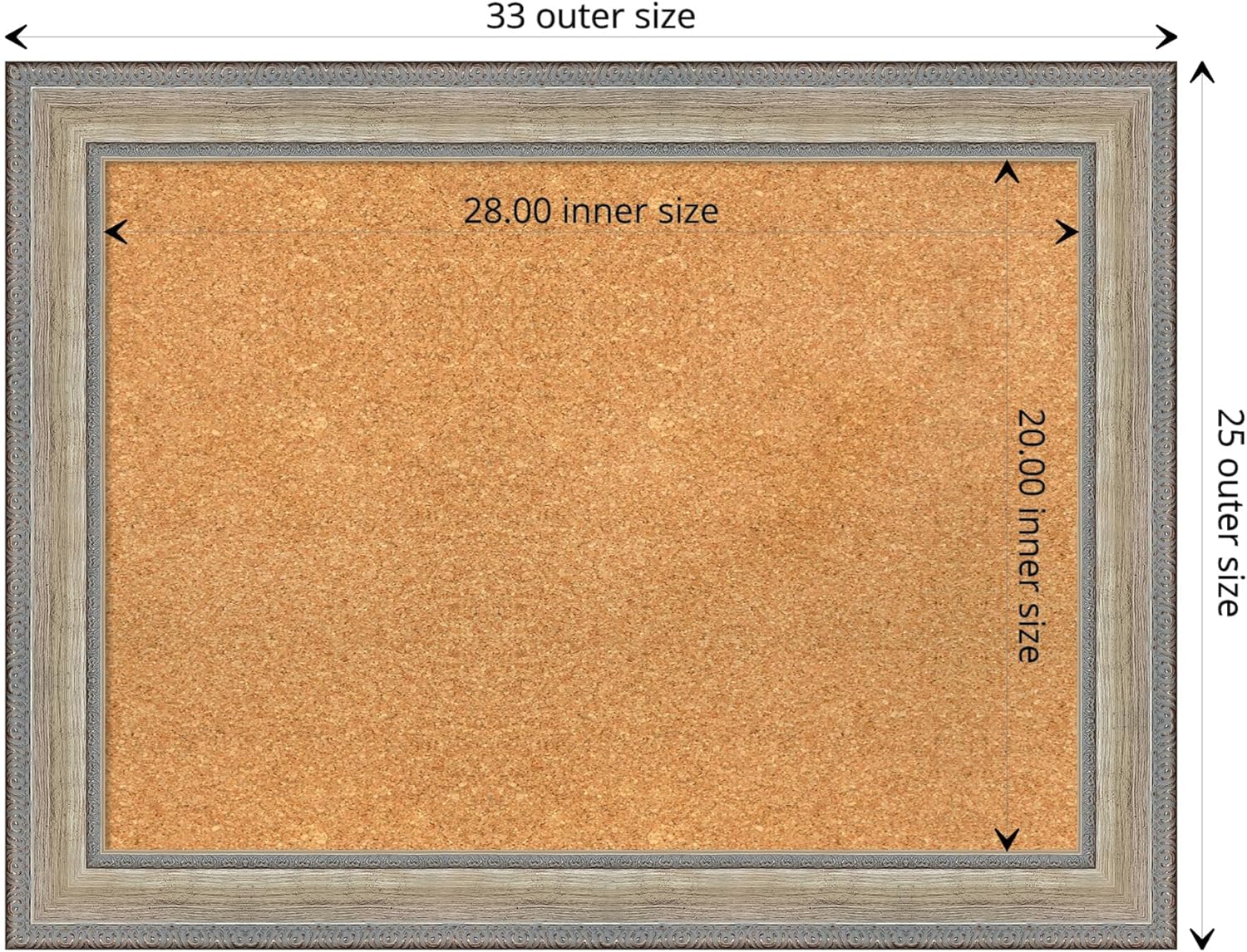 - DIMENSIONS: The overall size of this framed corkboard measures 33 in. x 25 in., including the frame. Its functional cork board area measures 28 in. x 20 in.