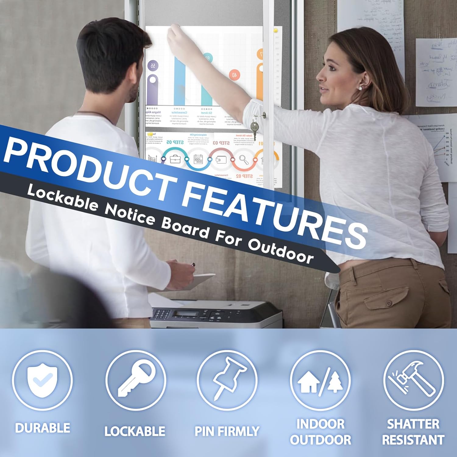 - 🔑SAFE DISPLAY —The clear and shatter-resistant windows provide plenty of visibility in high traffic or public. It's convenient to post and update notice documents under the protection of lockable doors and key mechanisms (2 keys included). Lockable acrylic doors keep information safe from theft and vandalism.