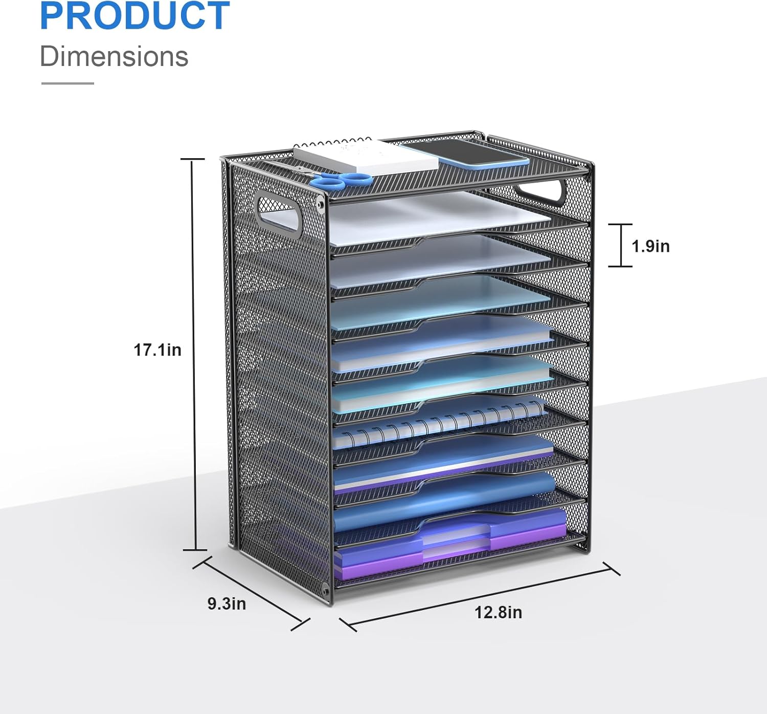 - [10 Tier Paper Organizer]: Our desk organizer has a large capacity for all your office supplies and desk accessories. The desktop organizer is designed to keep everything you need within reach, allowing you to increase your productivity.