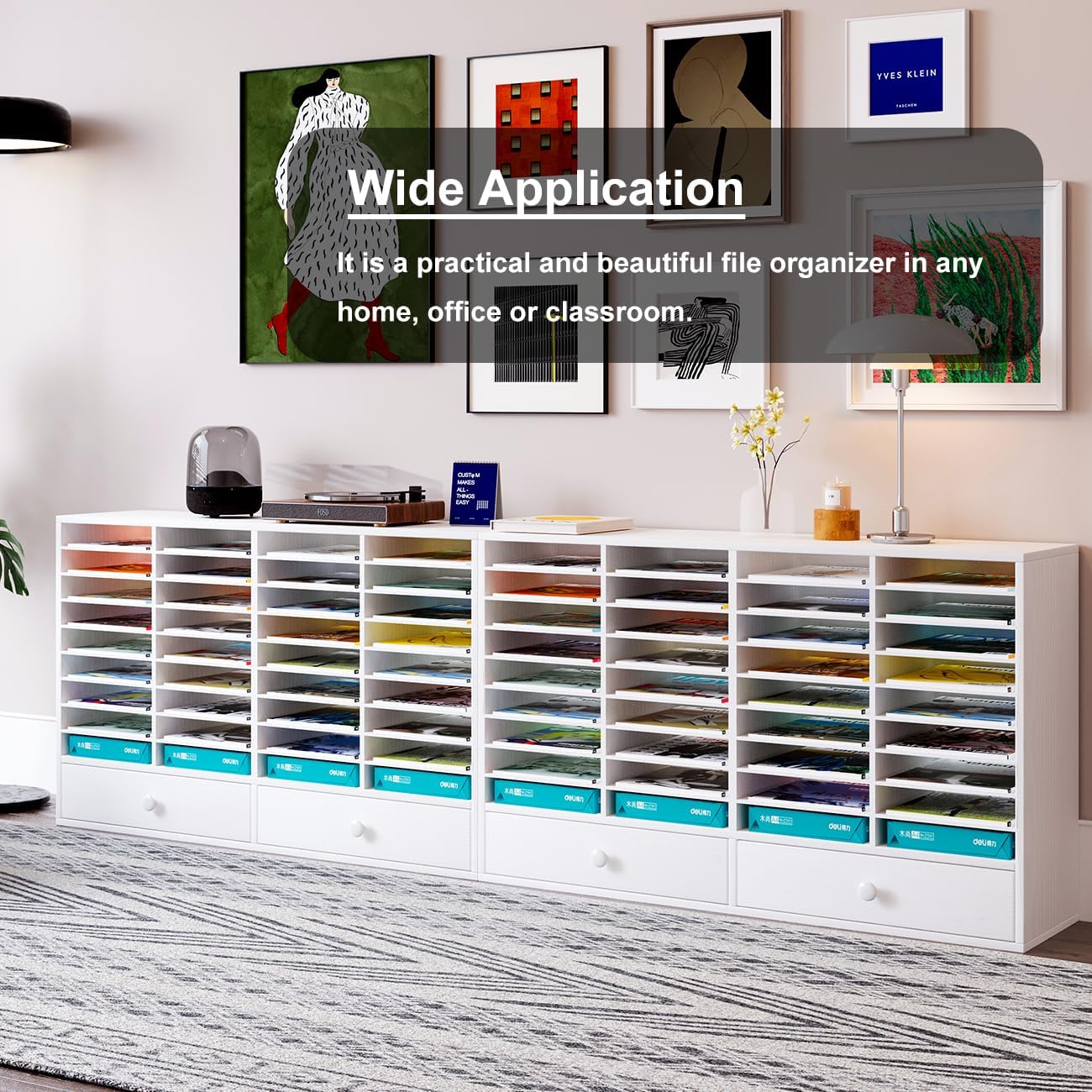- ▶Amazing Storage Capacity and Space-saving. The literature organizer has 10 Layers and 4 columns, a total of 36 slots and 2 drawers. It can help you sort, store and organize literature, magazines, comic books, files, student assignments, binders, catalogs, diaries, papers and documents on your desk, counter or floor quickly and easily and get you valuable workspace back
