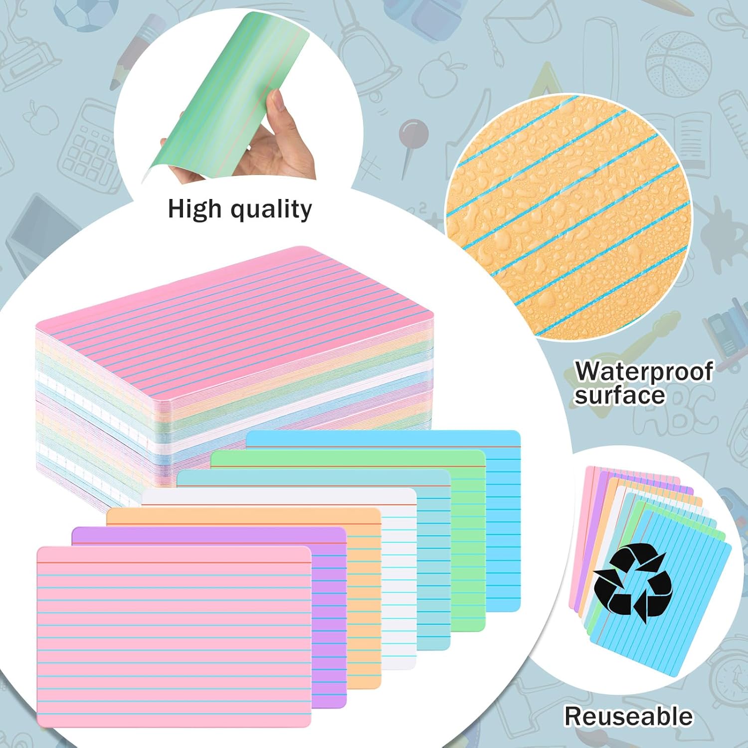 Harloon 100 Pcs Dry Erase Index Cards 4 x 6 Inch Laminated Reusable Dry Erase Note Cards Sheets for Office to Do List (Ruled Candy Color)