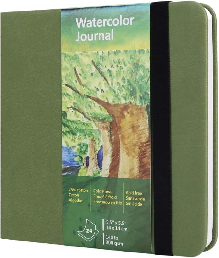 tumuarta Watercolor Journal,140 LB, 300 GSM, Cotton Paper, Cold Press, 24 Sheets, 48 Pages, Watercolor Paper Sketchbooks for Use As Travel Notebook and Mixed Media Pad, 5.5x5.5
