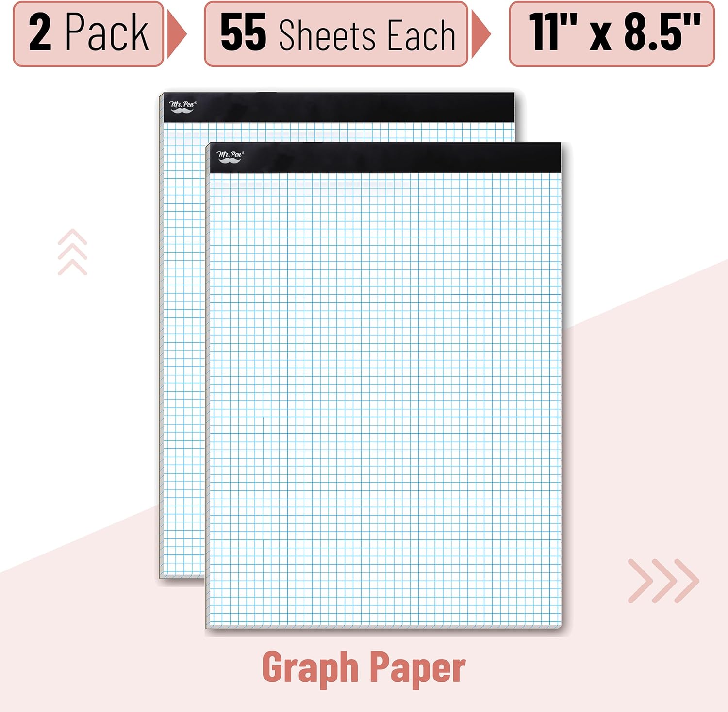 - Mr. Pen graph paper is presented in a pack of 2, each containing 55 un-punched sheets, providing a generous stockpile for all graphing requirements, each sheet sized at 11"x8.5".