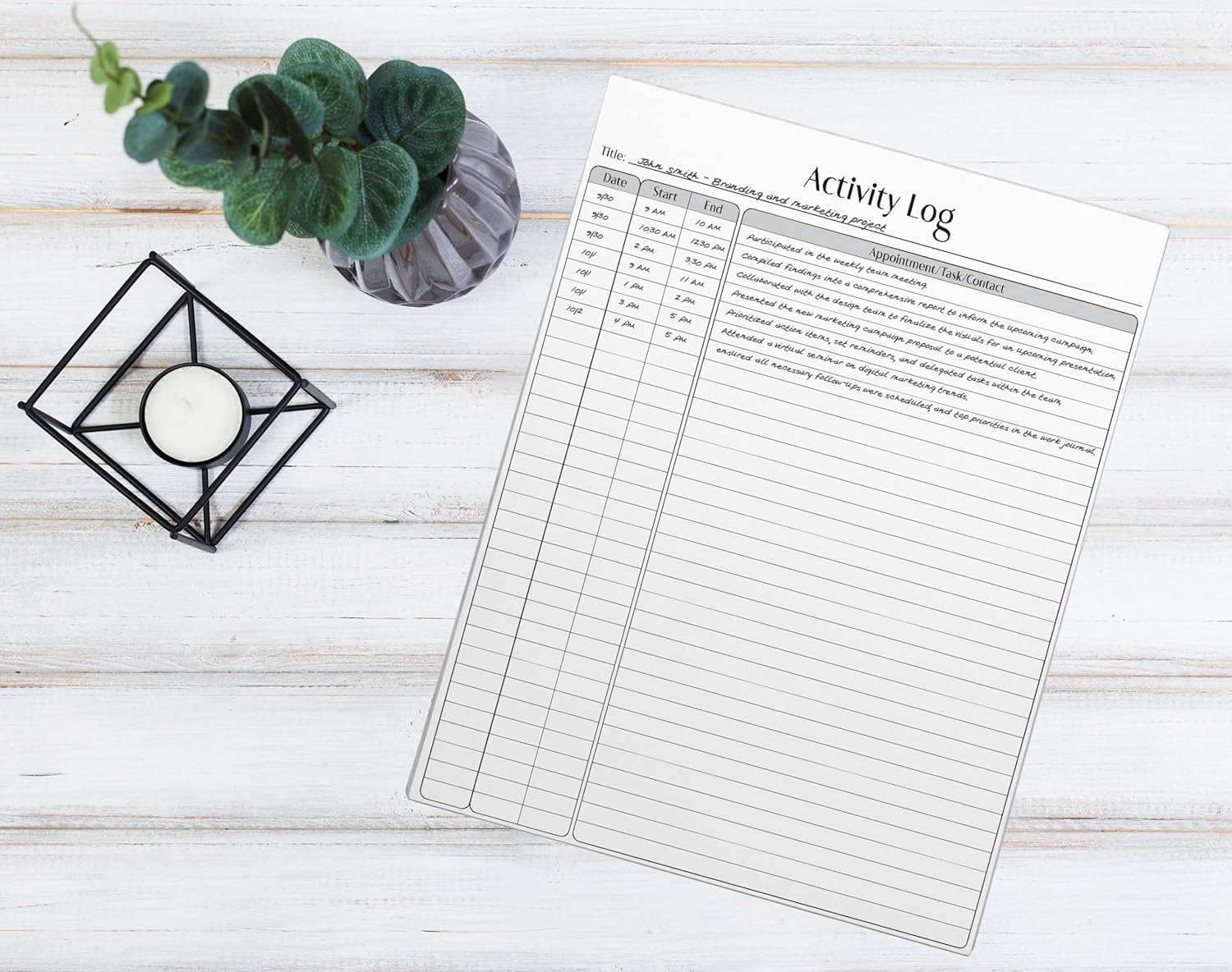 - 8.5" X 11": LETTER SIZE - With ample space for jotting down your activities/tasks, projects and other deliverables, this notepad ensures you never miss a beat. The larger size offers room to log all your work.