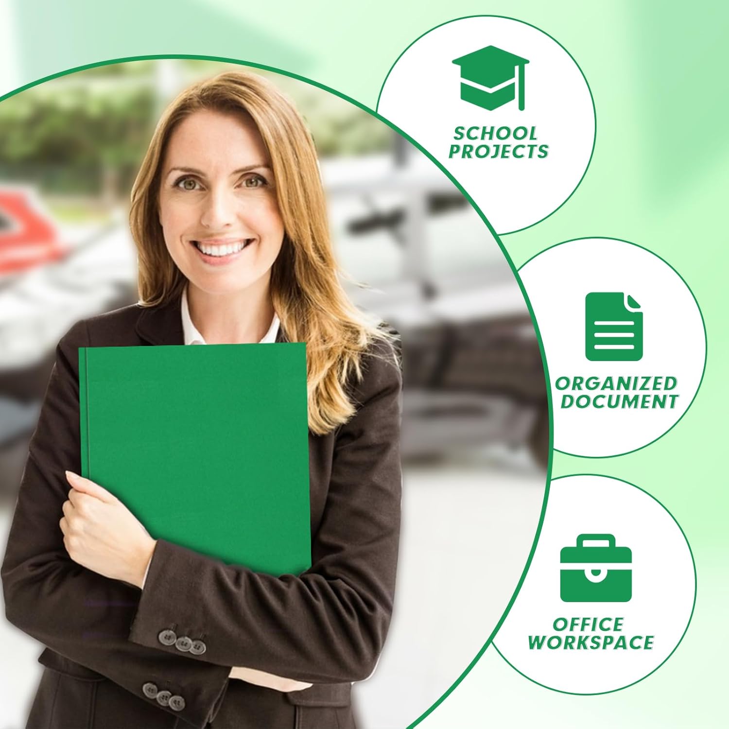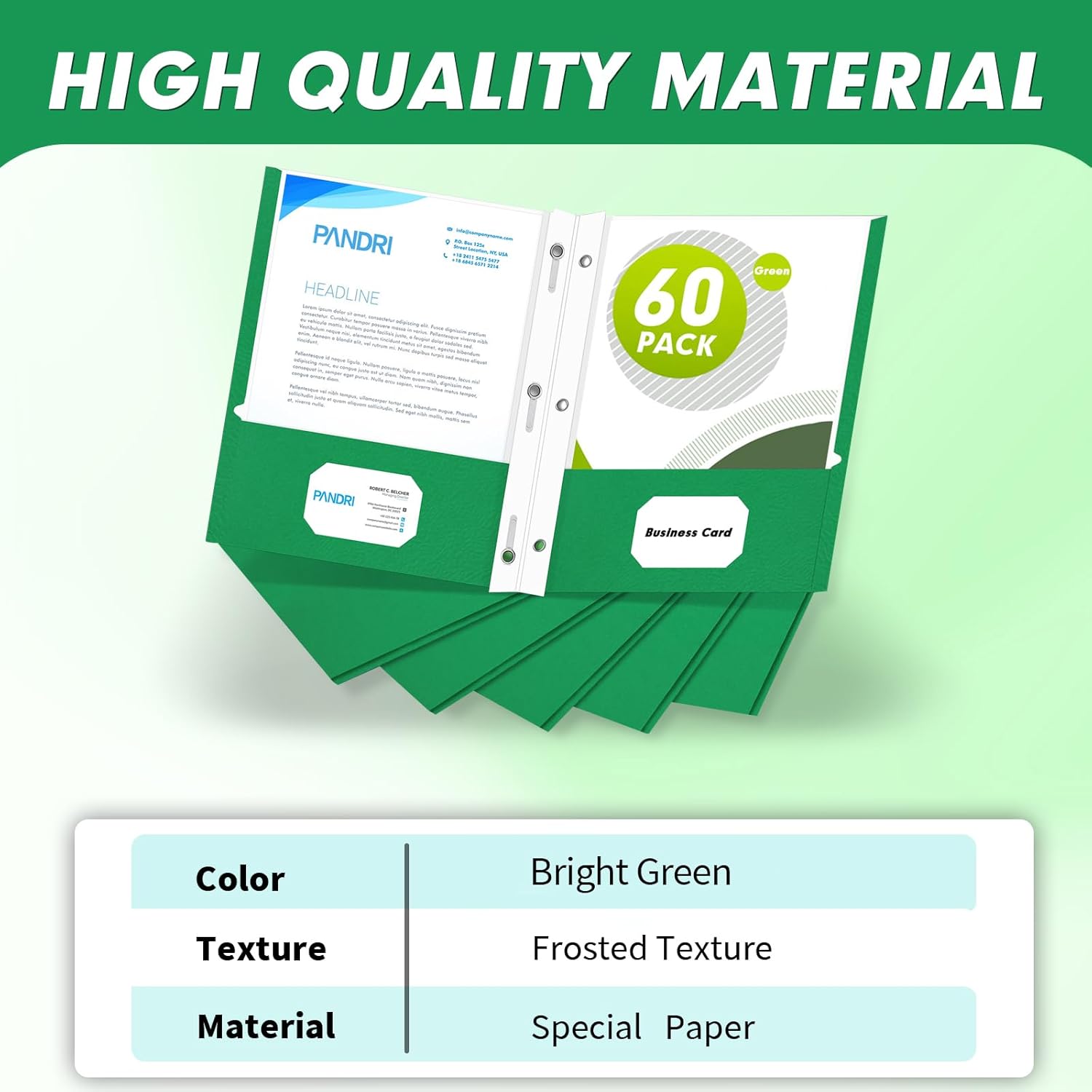 Two Pocket Folders, PANDRI 60 Pack Two Pocket Folders with Prongs, 3 Prong Folders Designed for Office and Classroom, Letter Size Green