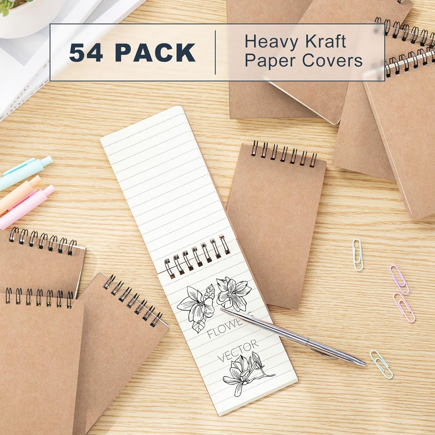 Tenceur 54 Pcs Mini Spiral Notebook 3" x 5" Top Bound Small Spiral Notepads Pocket Notebook Spiral Memo Pads 120 Pages Sketchbook College Ruled Journals for Kids Home Office School (Brown)