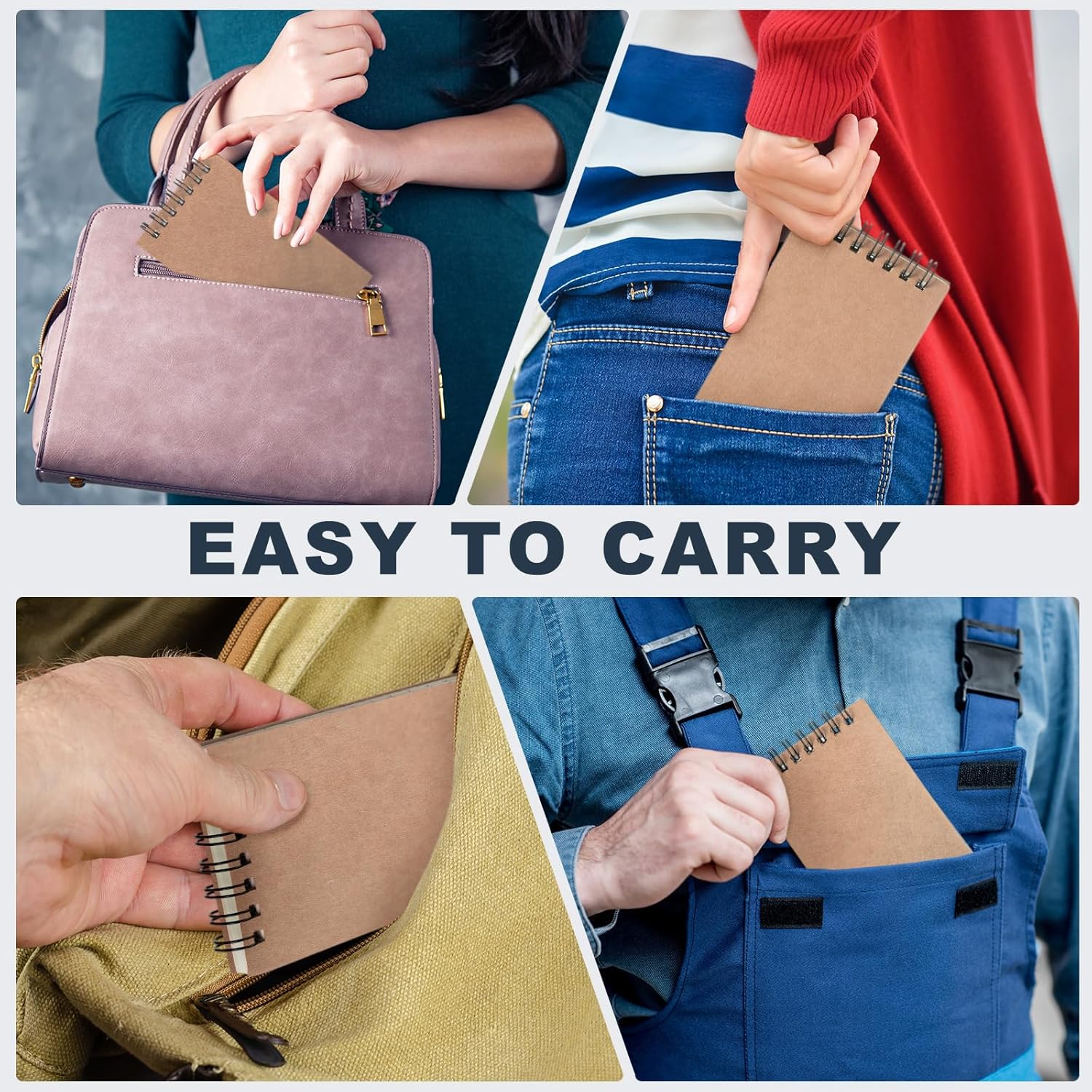 - Nice Workmanship: this mini spiral notebook is made of sturdy 350 g kraft paper cover, which could resist curling at bottom, and 80 grams of thickened paper inside, allowing you to use on both sides; No loose sheets or mishaps like with bargain notebook; Each piece of paper is carefully cut to give you a good mood while taking notes, jotting down ideas, recording important work items or travel thoughts