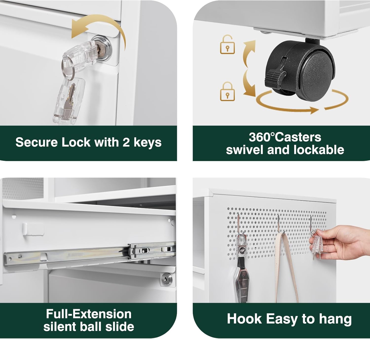 - ćStylish Design & Easy AssemblećThe storage cabinet allows hanging all kinds of accessories, and other small items. Locking file cabinet can be assembled easily,which features a convenient and uncomplicated installation.