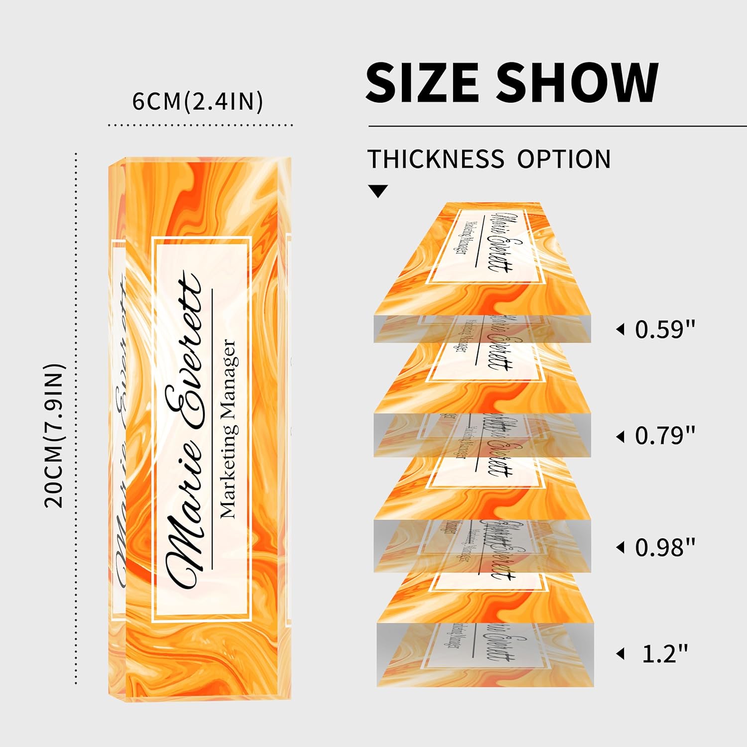 - 【Premium Acrylic Materials】:Besides personal customization, we also offer exclusive bulk gift personalization for major enterprises, creating a unique brand image. Our factory employs high-quality solid acrylic blocks to craft name plates, and utilizes the latest HD UV printing machines, ensuring that the content on the acrylic name plate is clear and resistant to fading. Whether in terms of quality or service, we cover all bases.