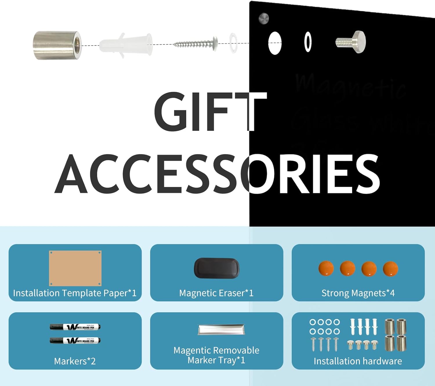 - Easy to Install: Glass Whiteboard Magnetic Dry Erase White Board is easy to install. Through the assembly instructions provided by us, you can easily install the whiteboard vertically or horizontally on the wall.