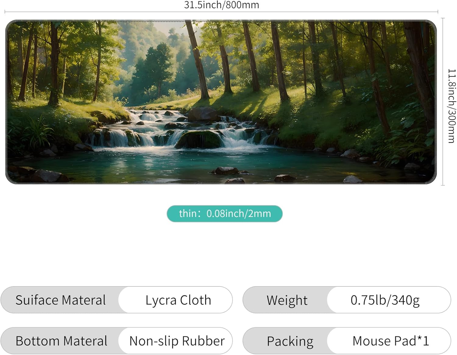 Dynippy Thin Extended Gaming Mouse Pad (31.5 * 11.8 * 0.08 inch) with Stitched Edges Large, Long XXL Keyboard and Mouse pad Desk Mat for Gaming Office & Home - Forest