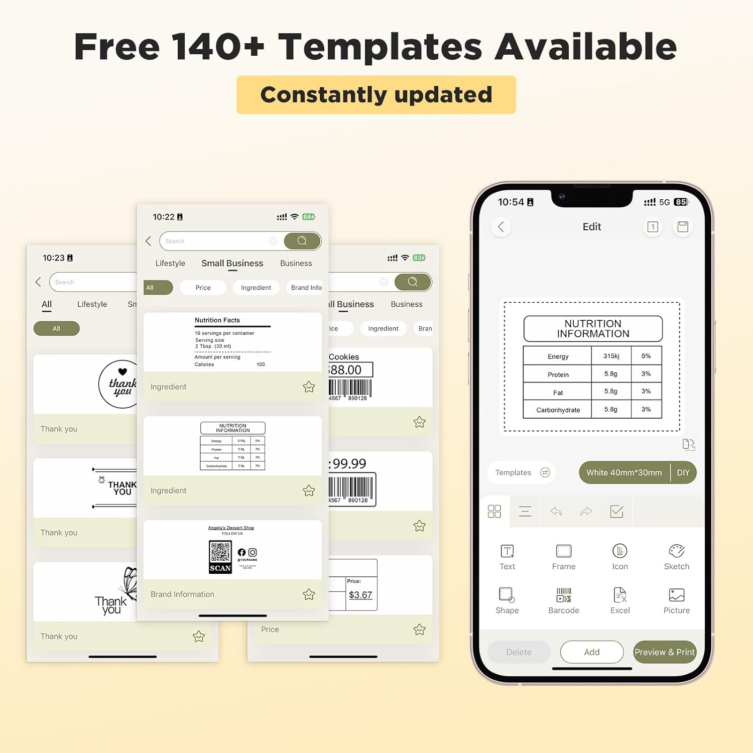 - Versatile App Editing Function: Easily add images from your phone or tablet; customize your labels with 40 fonts, 30 frames, and 450+ icons; all free to use