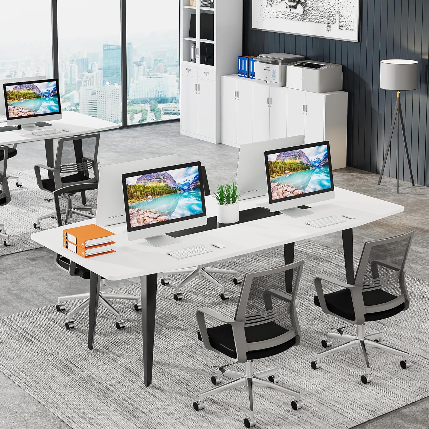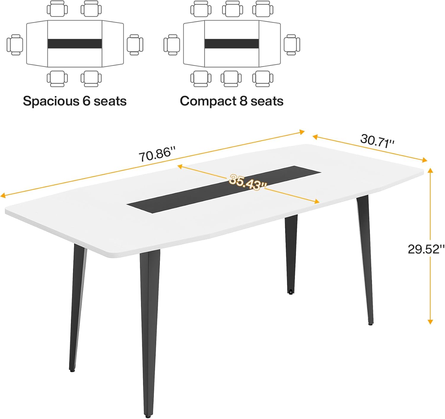 Tribesigns 6FT Conference Table, 70.86L x 35.43W x 29.52H Inches Boat Shaped Meeting Table, Modern Seminar Table for Office Meeting Conference Room (6ft, White & Black)