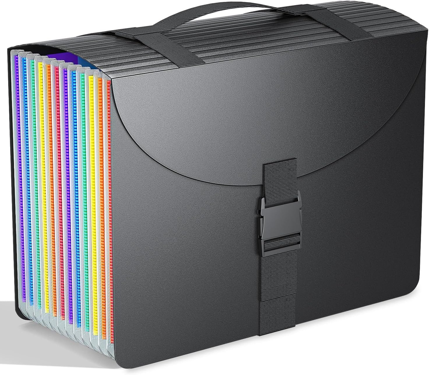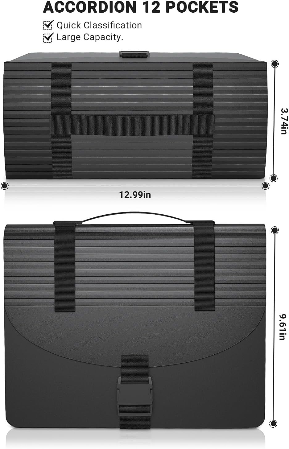 - ✔【SUPERIORITY】This innovative file organizer,designed with a durable handle and a fashion buckle, successfully upgraded from traditional expanding file folders. More easily take away all important documents any time and anywhere when hold a good amount of documents, the buckle is very good to protect the safety of files.