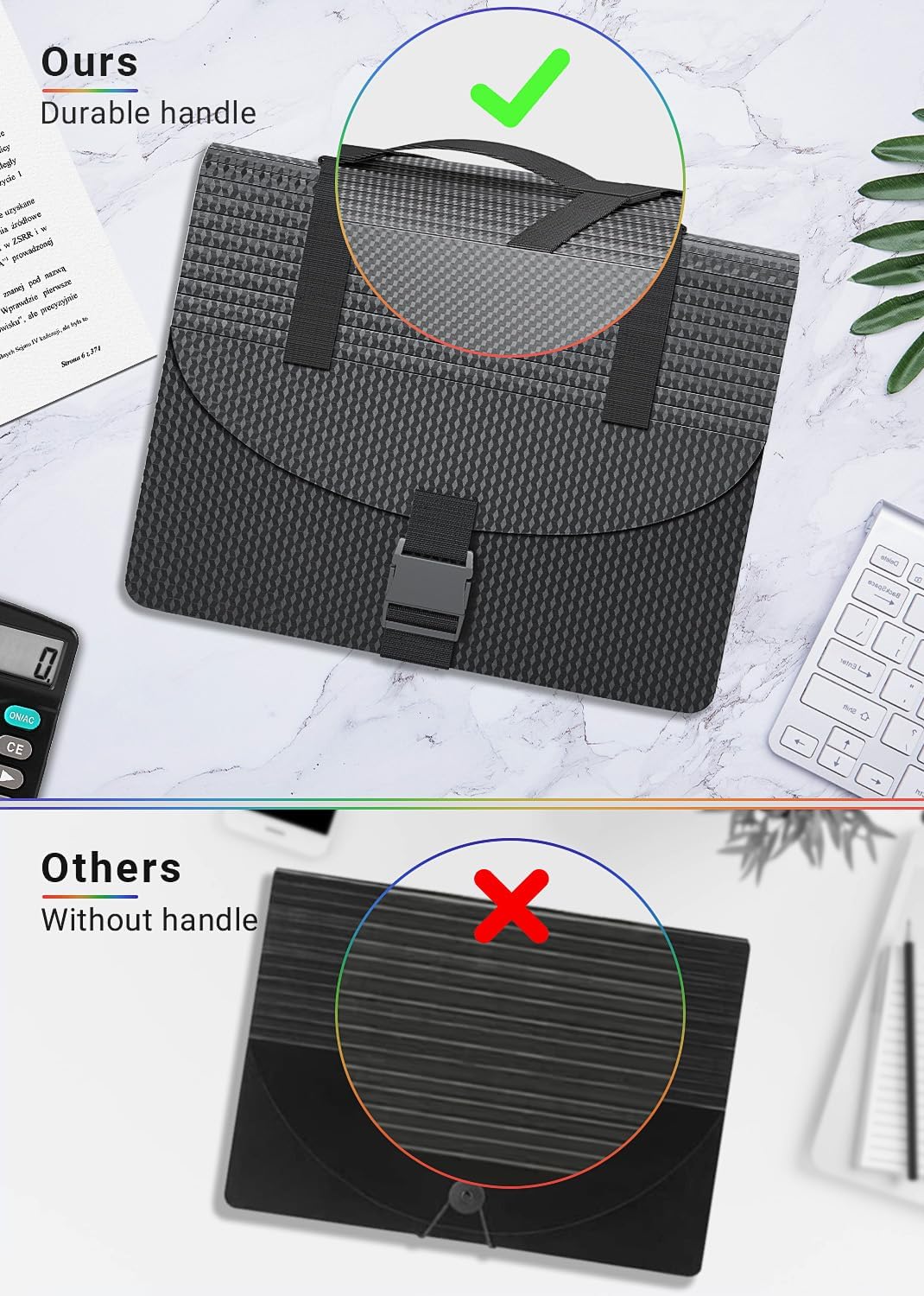 - ✔【SUPERIORITY】This innovative file organizer,designed with a durable handle and a fashion buckle, successfully upgraded from traditional expanding file folders. More easily take away all important documents any time and anywhere when hold a good amount of documents, the buckle is very good to protect the safety of files.