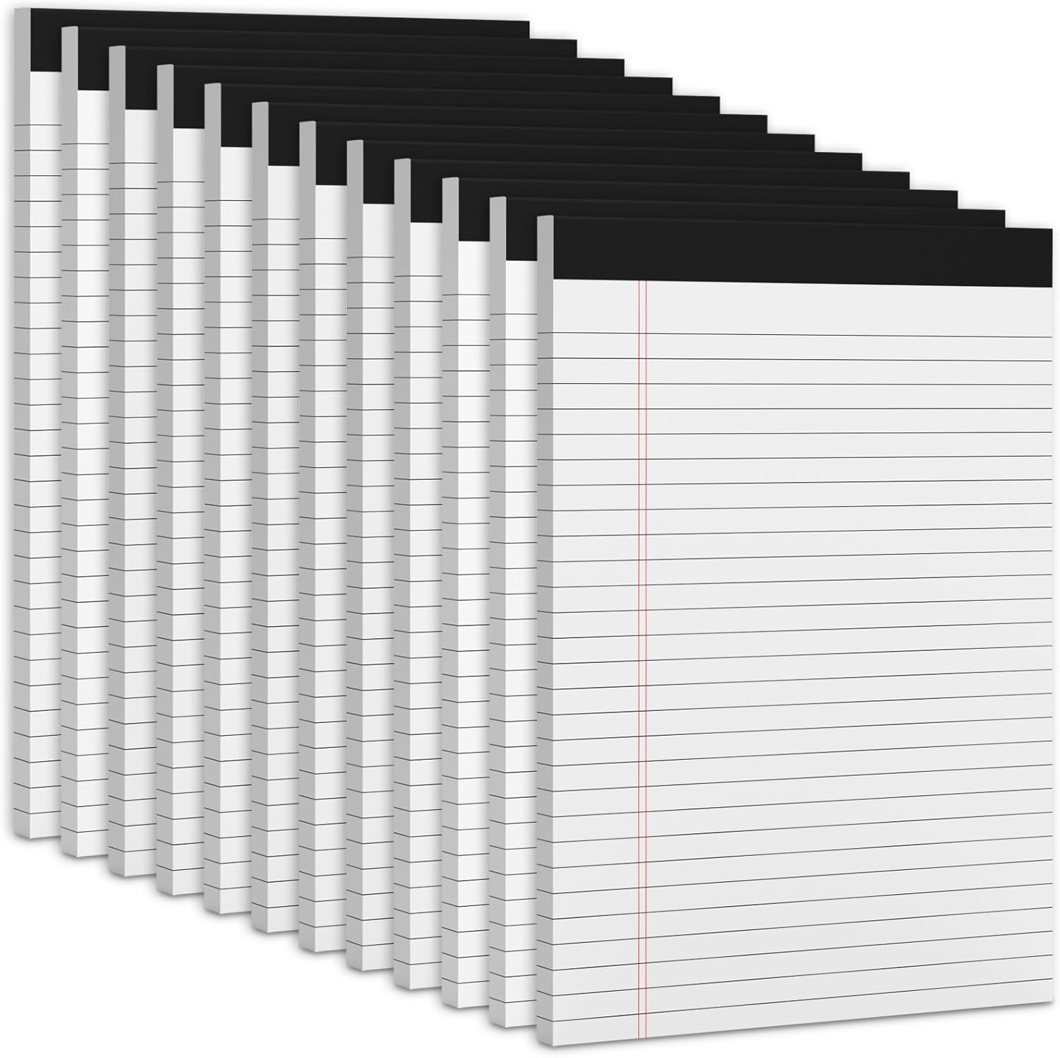 - 【Good Quality Legal Pads】:The white legal pads 8.5 x 11" made of 70g paper material, thicker than average writing pads. Legal notepads 8.5"x 11" letter lined paper pads has black lines and double red margin lines on left, the sturdy cardboard back allows the pen to slide smoothly, enjoy a smooth writing experience in everyday paper use and prevent ink from being left on the back or indented writing on the next sheet of paper. Suitable for a variety of pens.