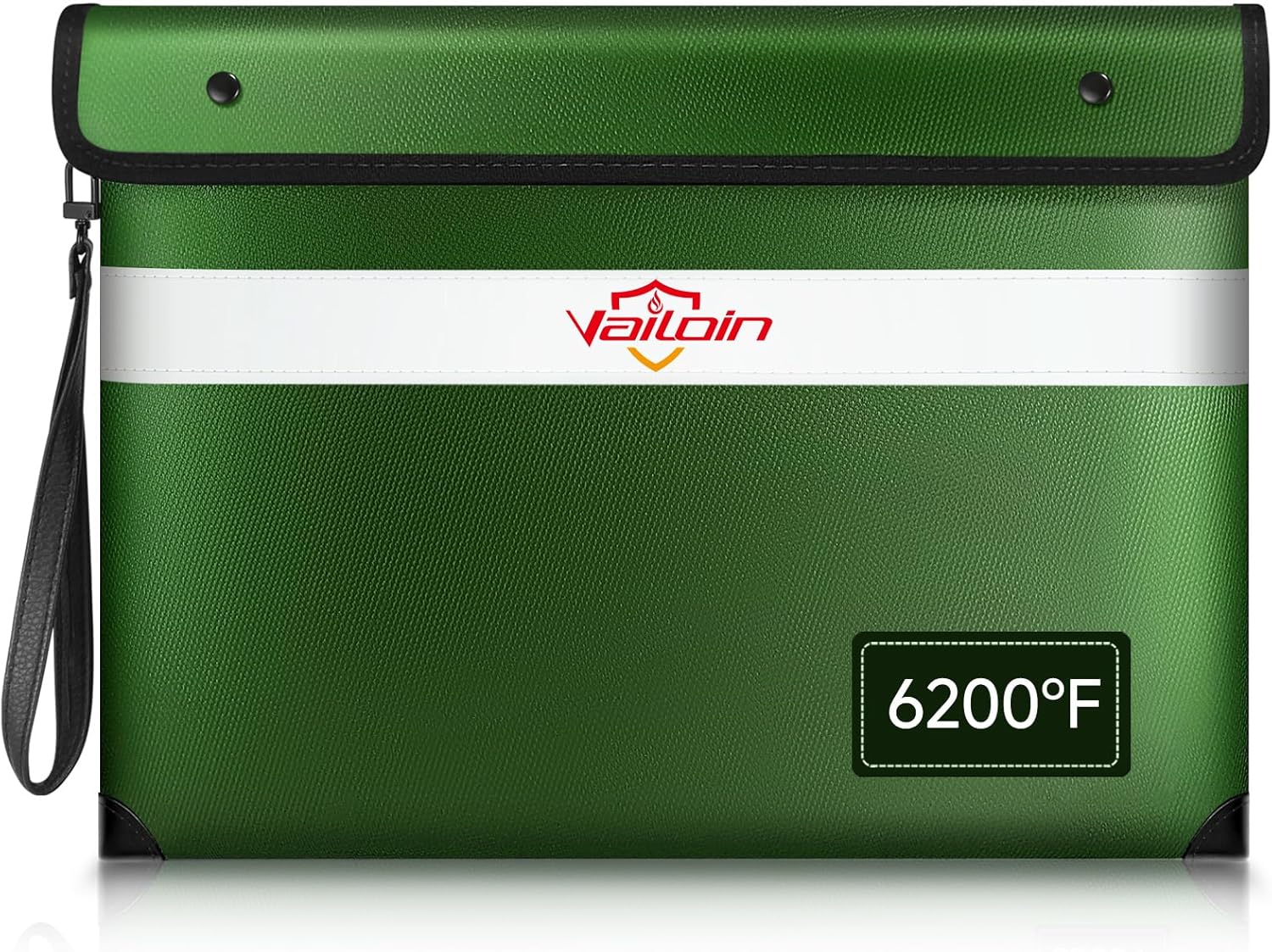 - 🧯【Reliable Material】This Vailoin fireproof bag uses high-quality fireproof materials. From the outside to the inside, it is composed of eight layers of materials such as glass fiber cloth, heat insulation cotton, and aluminum foil, making it pass Global Flammability Standards (US labs) and Vertical Combustion Testing ( SGS UL94 V-1) certification, enough to withstand high temperature of 6200℉. In addition, its edge seams have been strictly waterproofed to withstand high-speed jets of fire hose.