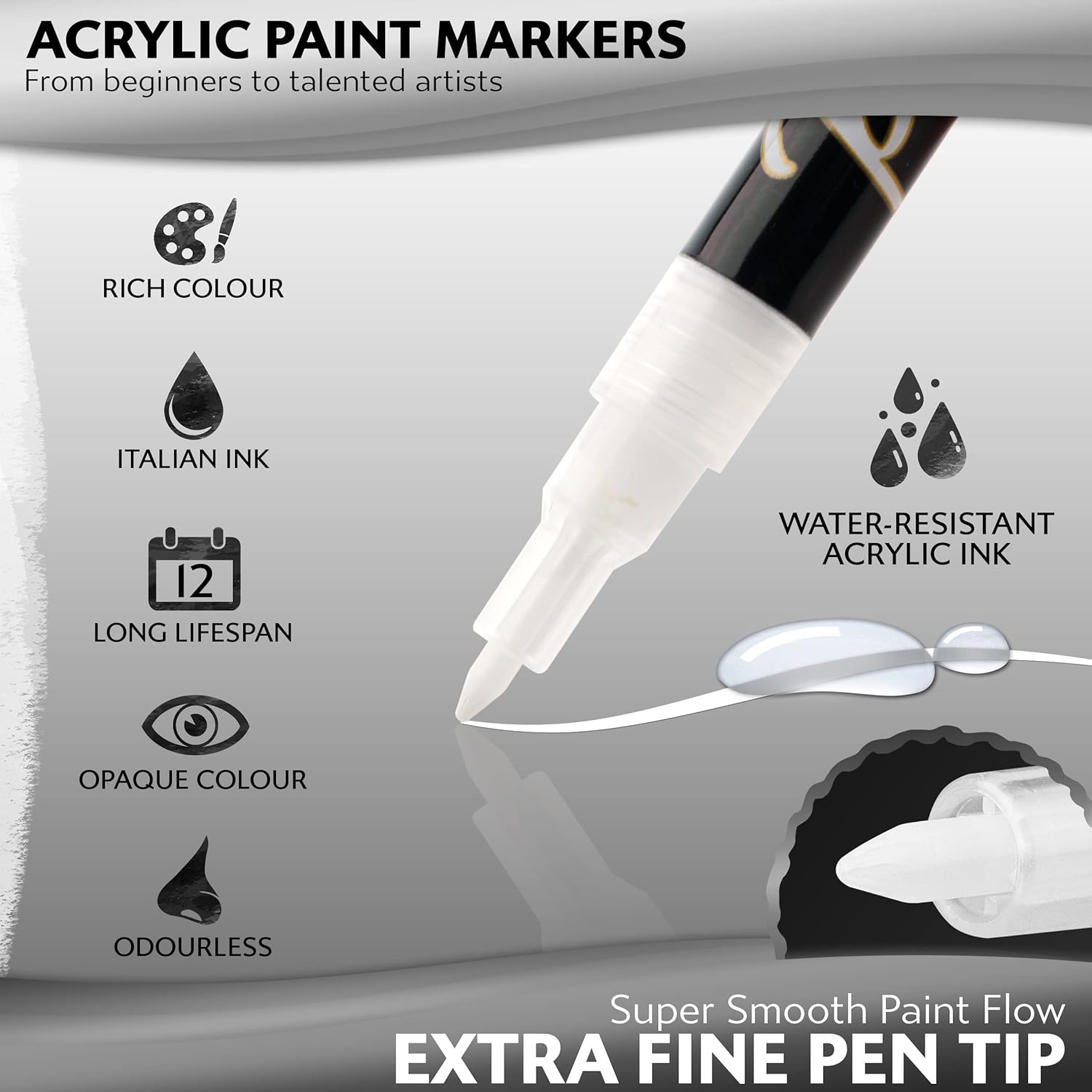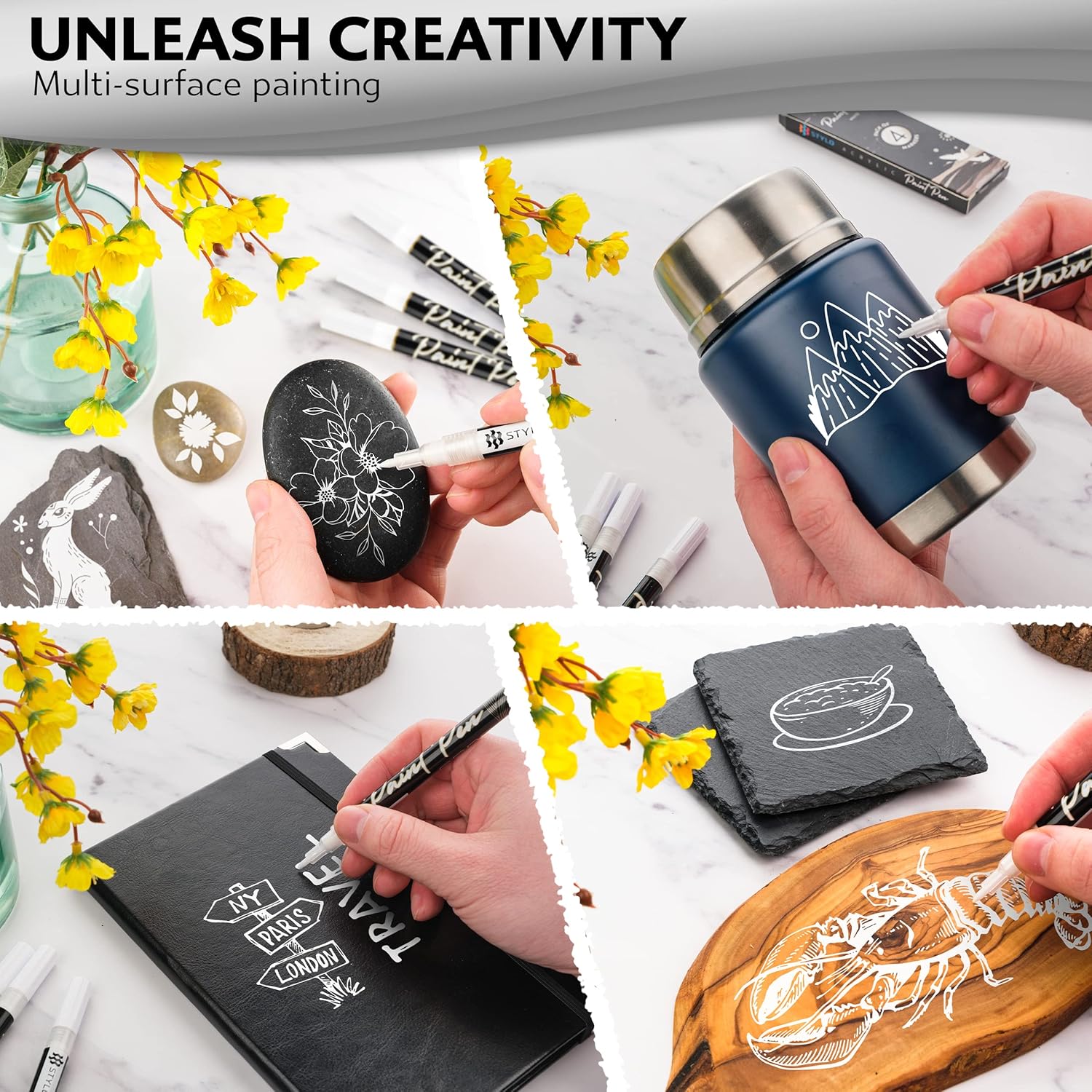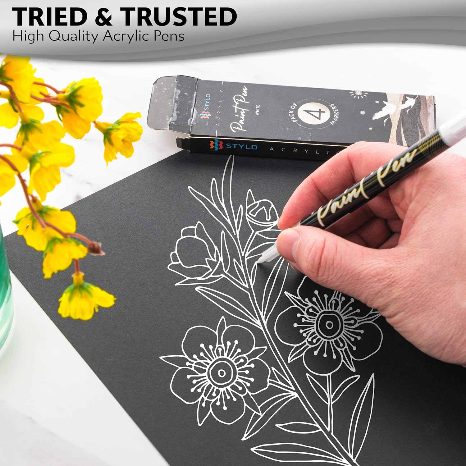 Stylo 8 Count Acrylic Metallic Pens - White Paint Pens - Fine Tip Permanent Acrylic Metallic Paint Markers for Rock Painting, Glass, Wood, Ideal for Arts and Crafts (Pack of 8, White)