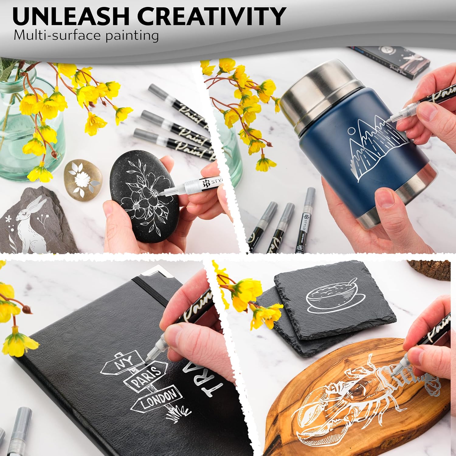 - VERSATILITY – 8 x Silver marker mettalic pen suitable to work on wood, fabric, glass, ceramic, stones and other surfaces